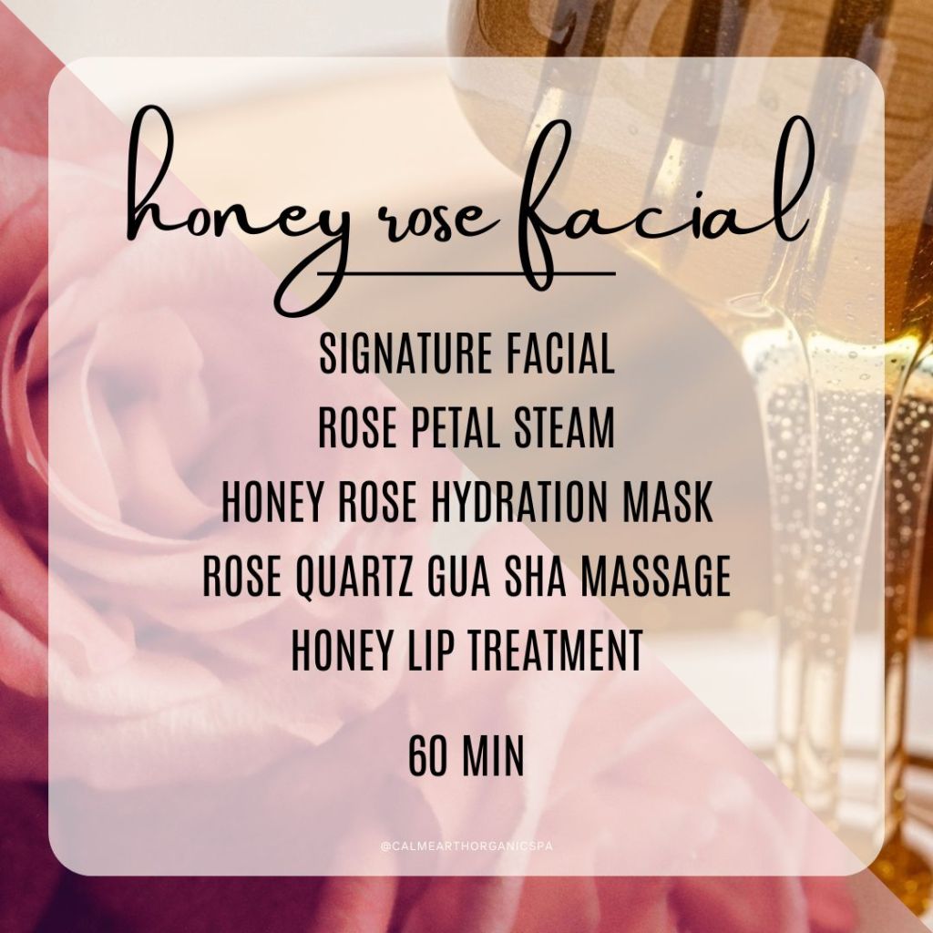 Our Signature Facial is elevated with a rose petal steam to calm and tone, a honey-rose hydration mask to deeply nourish and restore radiance, a rose quartz gua sha massage to sculpt and promote circulation, and a honey lip treatment for soft, supple lips.